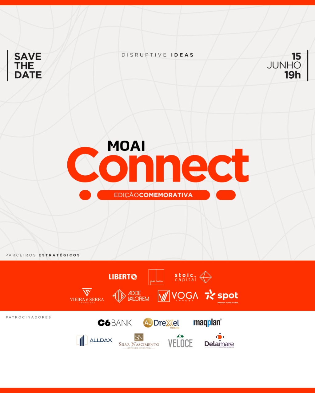 Com o intuito de potencializar o networking entre empresários e investidores da capital, o MOAI Connect vai acontecer na próxima quarta-feira (15), com início previsto para às 19h, no restaurante Veloce. Além de conectar empresários, o evento contará com open chopp e food de pratos típicos italianos e promete oferecer uma experiência única e deliciosa a todos os participantes.