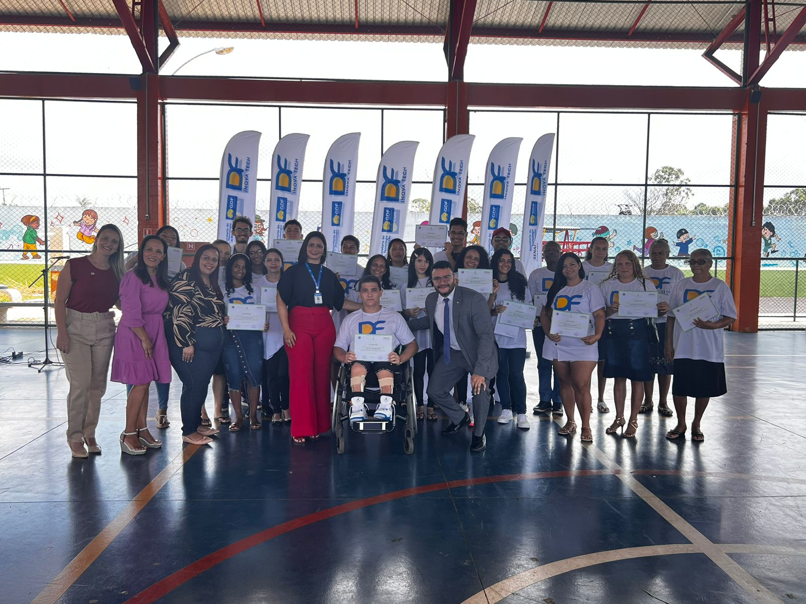 Estudantes da região de Santa Maria, no Distrito Federal, celebraram a conquista de certificados do programa DF Inova Tech, durante uma cerimônia realizada na Escola Classe 01 do Porto Rico. A iniciativa, fruto da parceria entre a Secretaria de Ciência, Tecnologia e Inovação do Distrito Federal (Secti-DF) e o Sistema Nacional de Aprendizagem Industrial do Distrito Federal (Senai-DF), busca oferecer capacitação em informática básica para jovens em busca de oportunidades no mercado de trabalho.